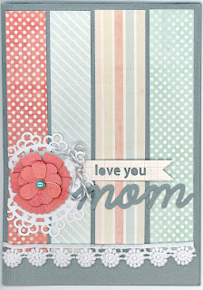 I am a big fan of 6x6 paper pads. It's a way to get all of the papers in a collection without breaking the bank, and they are so versatile. All three of my projects today feature 6x6 papers from My Minds' Eye's Follow Your Heart line. Just in time to get it in the mail, I created this card for my mom. The card itself is made from Bazzill Bling cardstock, which is shimmery and pretty in person.